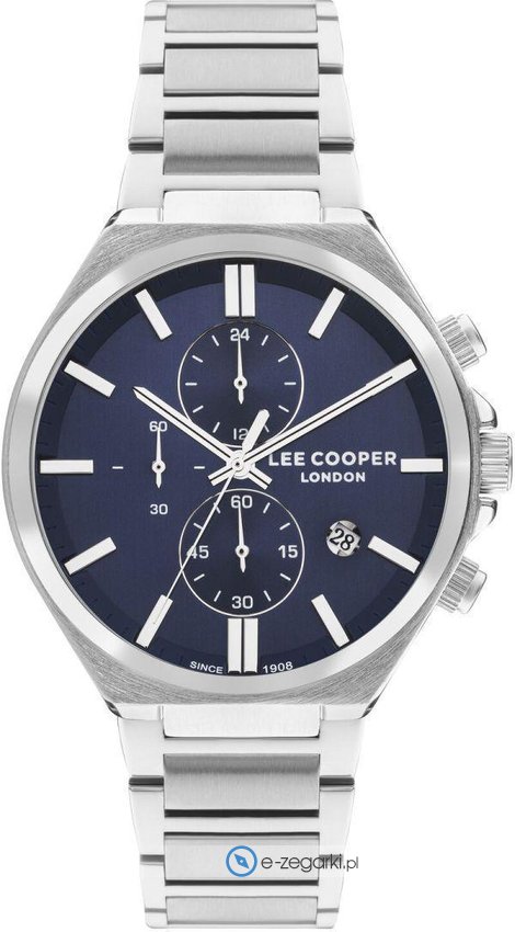 Zegarek męski LC07835.390 marki Lee Cooper to dobre połączenie funkcjonalności a także modnego wzornictwa. Cyferblat zegarka jest w kolorze granatowym. Godzina zaprezentowana jest w sposób analogowy co bez trudu pozwala ją odczytać. Koperta w barwach koloru stalowego szeroka jest na 46 mm - posiada okrągły kształt.