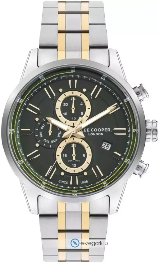 Męski zegarek Lee Cooper LC07836.270 to zegarek, który dzięki swemu wzornictwu zawsze będzie prezentował się dobrze. Ciekawą konstrukcję czasomierza osiągnięto dzięki tarczy w kolorze zielonym. Zaprezentowana metodą analogową aktualna godzina jest czytelna i szybka do sprawdzenia. Koperta szeroka jest na 45 mm - w kształcie okrągłym.