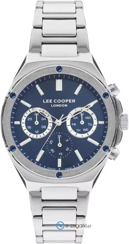 Zegarek męski LC07845.390 marki Lee Cooper to stylowe połączenie funkcjonalności oraz modnego wzornictwa. Niebanalną budowę zegarka osiągnięto dzięki tarczy w kolorze granatowym. Zaprezentowana metodą analogową aktualna godzina jest czytelna i prosta do odczytania. Koperta została ozdobiona kolorem stalowym szeroka jest na 44 mm - wyróżnia się okrągłym kształtem.