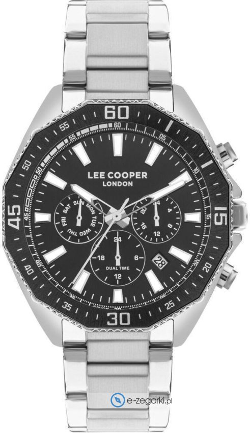 Model LC07847.350 marki Lee Cooper to gustowny zegarek naręczny męski, który wyposażono w ciekawe rozwiązania i funkcje. Niebanalną budowę czasomierza uzyskano dzięki tarczy w kolorze czarnym. Godzina przedstawiona jest w sposób analogowy co bez trudu pozwala ją odczytać. Koperta została pokryta kolorem stalowym szeroka jest na 45 mm - cechuje się okrągłym kształtem.