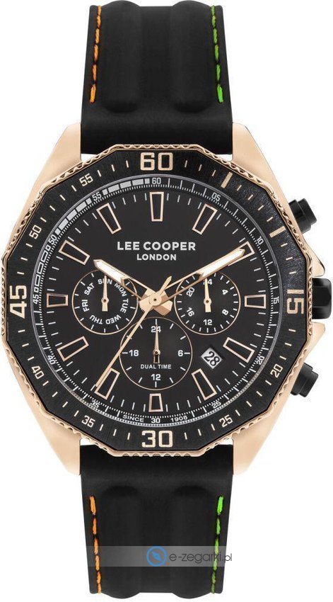 Męski zegarek Lee Cooper LC07848.451 to zegarek, który dzięki swemu wzornictwu zawsze będzie prezentował się dobrze. Styl zapewnia wysokiej klasy cyferblat w kolorze czarnym. Godzina przedstawiona jest w sposób analogowy co intuicyjnie pozwala ją odczytać. Koperta jest w kolorze różowo złotym szeroka jest na 45 mm - wyróżnia się okrągłym kształtem.