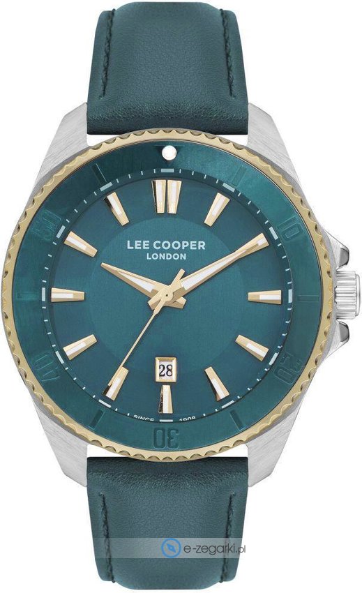Zegarek męski LC07870.277 marki Lee Cooper to stylowe połączenie funkcjonalności oraz modnego wzornictwa. Charakterystyczny wygląd czasomierza osiągnięto również dzięki tarczy w kolorze zielonym. Pokazana metodą analogową bieżąca godzina jest czytelna i łatwa do odczytania. Koperta jest w kolorze stalowym szeroka jest na 45 mm - posiada okrągły kształt.