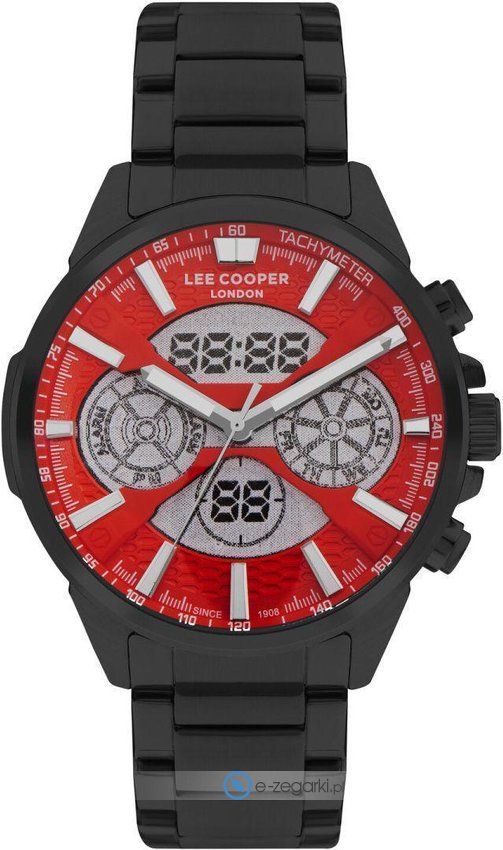 Zegarek męski LC07878.680 marki Lee Cooper to dobra pozycja dla ludzi ceniących sobie dbałość o szczegóły a także sprawne funkcjonowanie mechanizmów. Zegarek ten prezentuje godzinę w formacie analogowo - cyfrowym dzięki temu odczyt jest bezproblemowy. Koperta jest w kolorze czarnym szeroka jest na 46 mm - charakteryzuje się okrągłym kształtem.