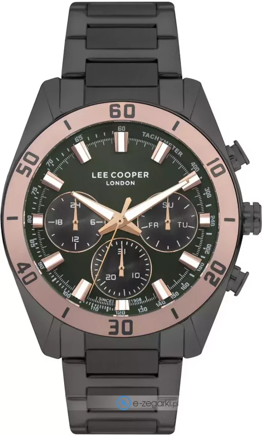 Zegarek męski LC07948.070 marki Lee Cooper to idealna propozycja dla ludzi ceniących sobie dbałość o detale oraz bezproblemowe działanie mechanizmów. Niestereotypowy wygląd zegarka uzyskano m.in. poprzez tarczę w kolorze zielonym. Zegarek ten prezentuje godzinę w formacie analogowym dzięki czemu odczyt jest bardzo łatwy. Koperta szeroka jest na 44 mm - posiada okrągły kształt.