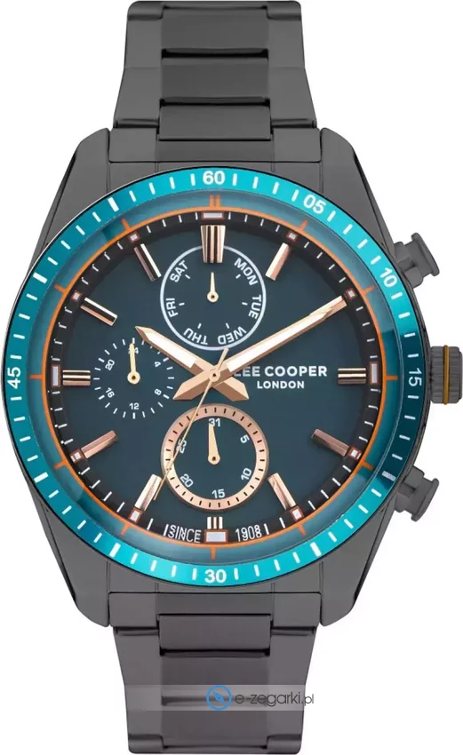 Model LC07949.090 marki Lee Cooper to elegancki zegarek naręczny męski, który posiada ciekawe rozwiązania oraz funkcje. Niebanalny wygląd zegarka osiągnięto również dzięki tarczy w kolorze granatowym. Zegarek ten prezentuje godzinę w formacie analogowym dzięki temu odczyt jest bezproblemowy. Koperta szeroka jest na 45 mm - charakteryzuje się okrągłym kształtem.