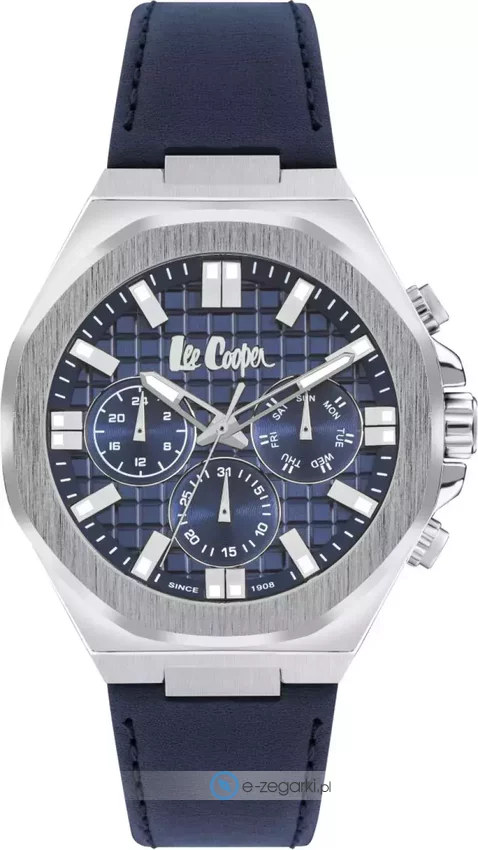 Zegarek męski LC07983.399 marki Lee Cooper to stylowe połączenie funkcjonalności oraz ciekawego designu. Ciekawy wygląd czasomierza uzyskano także dzięki tarczy w kolorze granatowym. Zaprezentowana metodą analogową bieżąca godzina jest czytelna i łatwa do sprawdzenia. Koperta w odcieniach koloru stalowego szeroka jest na 46 mm - cechuje się okrągłym kształtem.