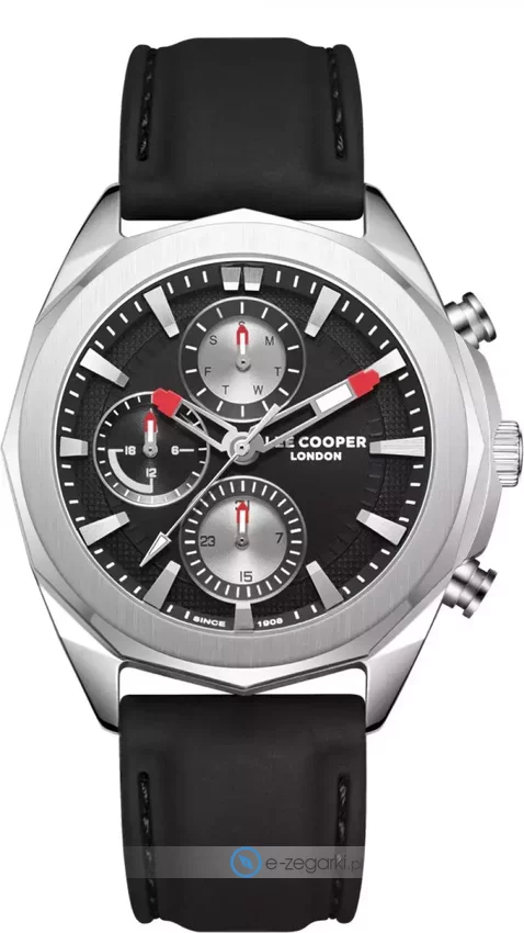 Zegarek męski LC07990.351 marki Lee Cooper to stylowe połączenie funkcjonalności a także ciekawego wzornictwa. Nieschematyczny wygląd czasomierza uzyskano m.in. poprzez cyferblat w kolorze czarnym. Godzina zaprezentowana jest w sposób analogowy co bez trudu pozwala ją odczytać. Koperta w barwach koloru stalowego szeroka jest na 44 mm - posiada okrągły kształt.