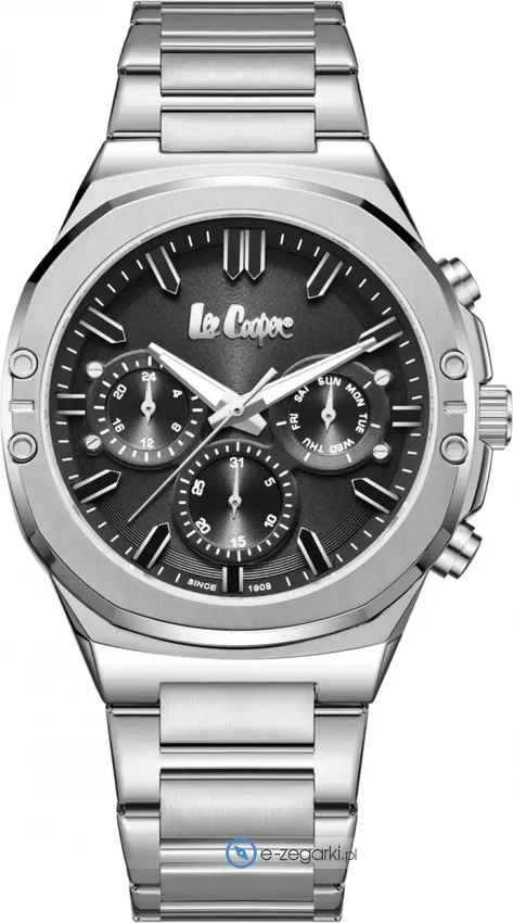 Model LC07991.350 marki Lee Cooper to gustowny zegarek naręczny męski, który posiada ciekawe rozwiązania i funkcje. Charakteru nadaje wysokiej klasy cyferblat w kolorze czarnym. Zegarek ten pokazuje aktualny czas w formacie analogowym dzięki temu odczyt jest bardzo łatwy. Koperta jest pokryta kolorem stalowym szeroka jest na 43 mm - w kształcie okrągłym.