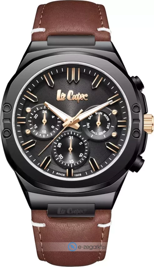 Model LC07992.658 marki Lee Cooper to gustowny zegarek naręczny męski, który wyposażono w pomysłowe rozwiązania oraz funkcje. Niebanalną konstrukcję czasomierza uzyskano z pomocą tarczy w kolorze czarnym. Zegarek ten prezentuje aktualny czas w formacie analogowym dzięki temu odczyt jest bardzo łatwy. Koperta jest pokryta kolorem czarnym szeroka jest na 43 mm - w kształcie okrągłym.