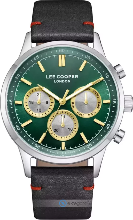 Zegarek męski LC08001.374 marki Lee Cooper to dobre połączenie funkcjonalności a także modnego designu. Ciekawy wygląd zegarka osiągnięto m.in. poprzez tarczę w kolorze zielonym. Godzina prezentowana jest w sposób analogowy co intuicyjnie pozwala ją odczytać. Koperta jest w kolorze stalowym szeroka jest na 44 mm - posiada okrągły kształt.