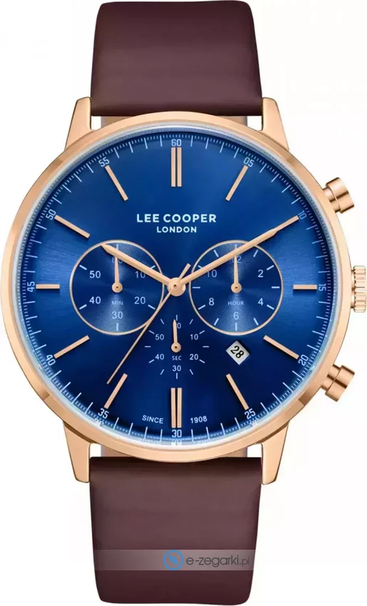 Lee Cooper to to brand założony w Londynie w 1908 roku. Jest najstarszą europejską marką zajmująca się produkcją używanej na codzień odzieży jeansowej. W dzisiejszych czasach brand ten dostępny jest praktycznie na wszystkich kontynentach w ponad 5000 punktach sprzedaży. Aby być kompletną marką modową oczywiście nie mogło zabrankąć zegarków, stąd właśnie decyzja o rozszerzeniu asortymentu i produkcji czasomierzy Lee Cooper. Zegarki Lee Cooper tak jak reszta produktów marki oferują niezwykle wysoką jakość wykonania w przystępnej cenie. Zegarki zawsze mają bardzo dobre wykończenie, a także dopracowane w szczegółach detale. Sprzedawane w naszym sklepie zegarki Lee Coooper pochodzą od oficjalnego dystyrbutora i objęte są dwuletnia. Dzięki temu masz pewność, że zakupiony czasomierz zawsze gdy zajdzie taka potrzeba będzie mógł być odpowiednio traktowany w ewentualnym procesie gwarancyjnym lub pogwarancyjnym.
