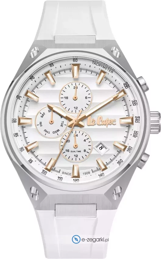 Zegarek LC08063.333 wyposażony jest w mechanizm zasilany normalną baterią kwarcową. Pasek koloru białego wykonany jest z wysokiej jakości tworzywa sztucznego.