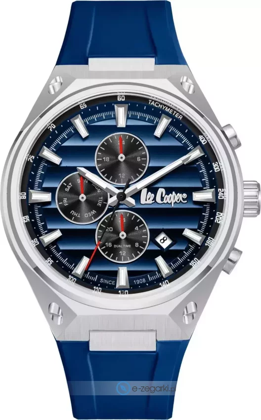 Zegarek męski LC08063.399 marki Lee Cooper to idealna pozycja dla ludzi ceniących sobie dbałość o detale oraz bezawaryjne funkcjonowanie mechanizmów. Ciekawy wygląd zegarka osiągnięto m.in. poprzez cyferblat w kolorze granatowym. Zegarek ten pokazuje aktualny czas w formacie analogowym dzięki czemu odczyt jest bardzo łatwy. Koperta jest w kolorze stalowym szeroka jest na 45 mm - posiada okrągły kształt.