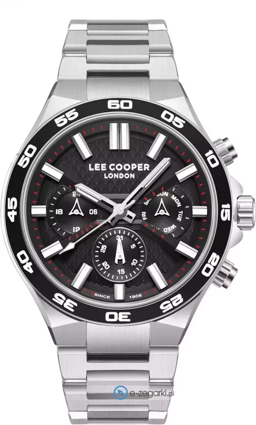 Lee Cooper to brand, który powstał w Londynie w 1908 roku. Jest najstarszą europejską marką zajmująca się produkcją popularnej odzieży jeansowej. W dzisiejszych czasach brand ten można zobaczyć na wszystkich kontynentach w przeszło 5000 punktach sprzedaży. Do kompletu oprócz odzieży brakowało tylko zegarków, stąd właśnie decyzja o powiększeniu asortymentu i produkcji zegarków Lee Cooper. Zegarki Lee Cooper podobnie jak reszta produktów marki charakteryzuje wysoka jakość wykonania w atrakcyjnej cenie. Zegarki cechują się dopracowanymi detalami oraz precyzyjnym wykończeniem. Sprzedawane w naszym sklepie zegarki Lee Coooper pochodzą od oficjalnego polskiego dystyrbutora i objęte są jego gwarancją. Dzięki temu masz pewność, że zakupiony zegarek zawsze gdy zajdzie taka konieczność będzie mógł być odpowiednio traktowany w ewentualnym procesie gwarancyjnym lub pogwarancyjnym.