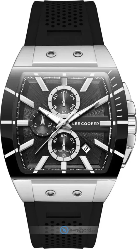 Model LC08081.351 marki Lee Cooper to gustowny zegarek naręczny męski, który wyposażono w pomysłowe rozwiązania oraz funkcje. Niebanalny wygląd czasomierza uzyskano również dzięki tarczy w kolorze czarnym. Zaprezentowana metodą analogową aktualna godzina jest czytelna i szybka do odczytania. Koperta szeroka jest na 43 mm - ma prostokątny kształt.