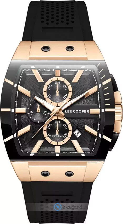 Zegarek męski LC08081.451 marki Lee Cooper to dobre połączenie funkcjonalności a także modnego wzornictwa. Wysokiej trwałości cyferblat zegarka ozdobiono czarnym kolorem. Pokazana metodą analogową bieżąca godzina jest czytelna i łatwa do odczytania. Koperta szeroka jest na 43 mm - posiada prostokątny kształt.
