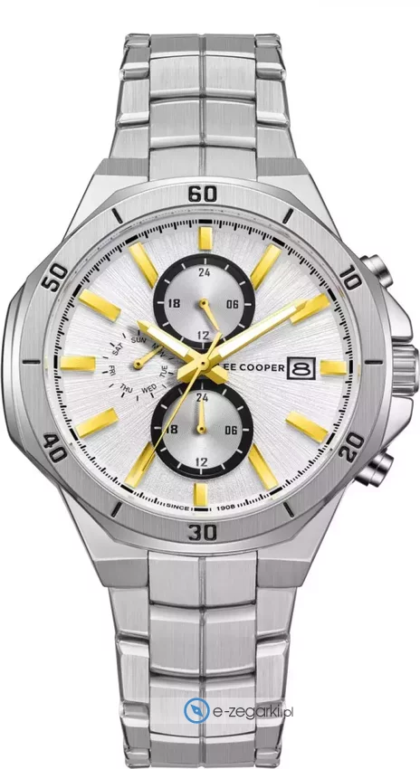 Męski zegarek Lee Cooper LC08087.330 to zegarek, który dzięki swemu wzornictwu zawsze będzie prezentował się dobrze. Zegarek ten prezentuje aktualny czas w formacie analogowym dzięki temu odczyt jest bardzo łatwy. Koperta jest ozdobiona kolorem stalowym szeroka jest na 43 mm - charakteryzuje się okrągłym kształtem.