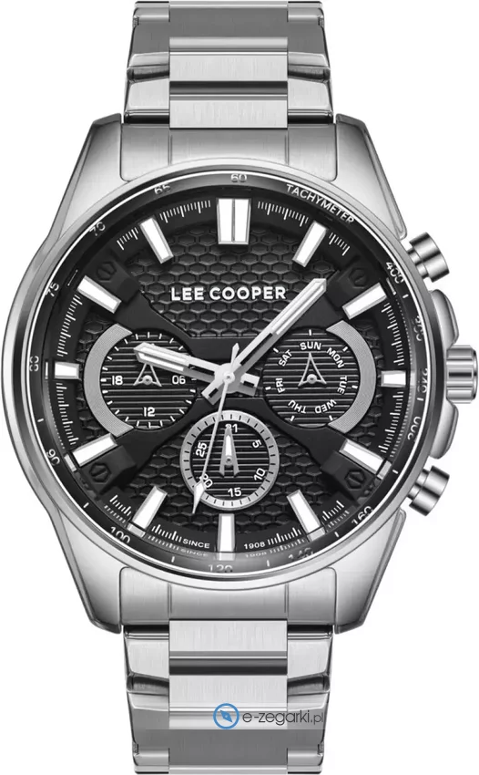 Model LC08090.350 marki Lee Cooper to elegancki zegarek naręczny męski, który jest wyposażony w ciekawe rozwiązania i funkcje. Nieschematyczny wygląd czasomierza uzyskano także dzięki tarczy w kolorze czarnym. Zegarek ten pokazuje aktualny czas w formacie analogowym dzięki czemu odczyt jest bardzo łatwy. Koperta w odcieniach koloru stalowego szeroka jest na 47 mm - posiada okrągły kształt.