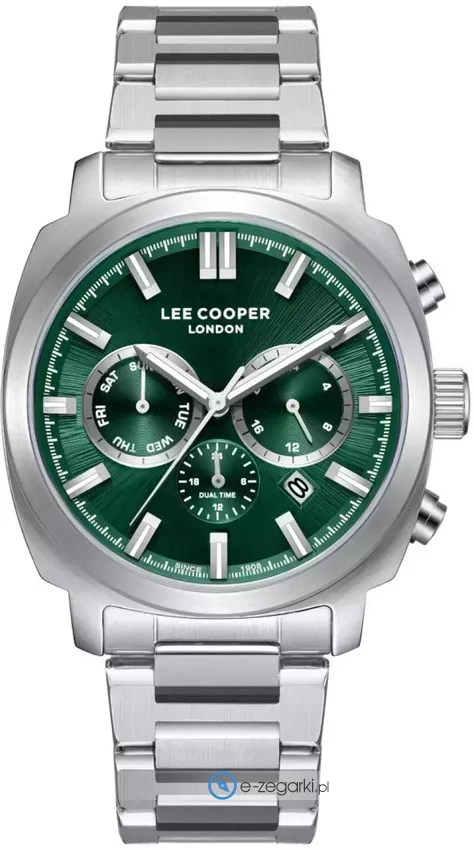 Zegarek męski LC08144.370 marki Lee Cooper to stylowe połączenie funkcjonalności i modnego wzornictwa. Niestereotypowy wygląd zegarka uzyskano m.in. poprzez cyferblat w kolorze zielonym. Zegarek ten pokazuje aktualny czas w formacie analogowym dzięki czemu odczyt jest intuicyjny. Koperta została ozdobiona kolorem stalowym szeroka jest na 42 mm - posiada okrągły kształt.