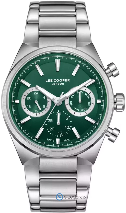 Zegarek męski LC08174.370 marki Lee Cooper to ciekawa propozycja dla ludzi ceniących sobie dbałość o szczegóły oraz bezproblemowe funkcjonowanie mechanizmów. Cyferblat zegarka jest w kolorze zielonym. Zegarek ten prezentuje aktualny czas w formacie analogowym dzięki czemu odczyt jest bezproblemowy. Koperta jest pokryta kolorem stalowym szeroka jest na 42 mm - cechuje się okrągłym kształtem.