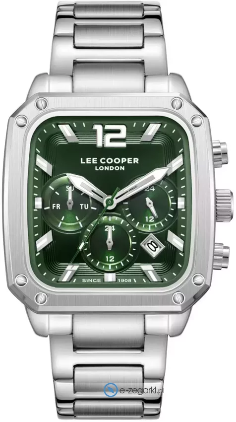Zegarek męski LC08182.370 marki Lee Cooper to idealne połączenie funkcjonalności i modnego designu. Charakter zapewnia wysokiej klasy cyferblat w kolorze zielonym. Godzina przedstawiona jest w sposób analogowy co bez trudu pozwala ją odczytać. Koperta jest pokryta kolorem stalowym szeroka jest na 39 mm.
