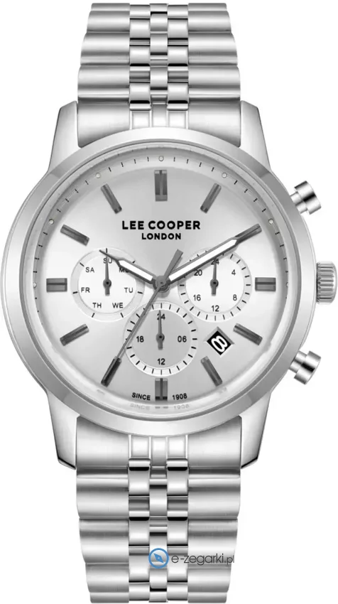 Lee Cooper to marka, która powstała w Londynie w 1908 roku. Jest najstarszym europejskim brandem zajmującym się wytwarzaniem popularnej odzieży jeansowej. Obecnie brand ten można znaleźć praktycznie na wszystkich kontynentach w przeszło 5000 sklepów. Do kompletu oprócz odzieży brakowało tylko zegarków, stąd właśnie decyzja o powiększeniu asortymentu i produkcji czasomierzy Lee Cooper. Zegarki Lee Cooper podobnie jak reszta produktów marki charakteryzuje wysoka jakość wykonania w atrakcyjnej cenie. Zegarki zawsze mają bardzo dobre wykończenie, a także dopracowane w szczegółach detale. Sprzedawane w naszym sklepie zegarki Lee Coooper pochodzą od oficjalnego polskiego dystyrbutora i objęte są jego gwarancją. W ten sposób masz pewność, że zakupiony zegarek zawsze gdy zajdzie taka potrzeba będzie mógł być odpowiednio traktowany w ewentualnym procesie gwarancyjnym lub pogwarancyjnym.