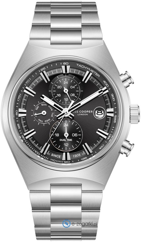 Zegarek męski LC08214.350 marki Lee Cooper to dobra pozycja dla ludzi ceniących sobie dbałość o detale oraz bezproblemowe funkcjonowanie mechanizmów. Wysokiej jakości cyferblat zegarka pokryto czarnym kolorem. Godzina pokazywana jest w sposób analogowy co bez trudu pozwala ją odczytać. Koperta w barwach koloru stalowego szeroka jest na 43 mm - wyróżnia się okrągłym kształtem.