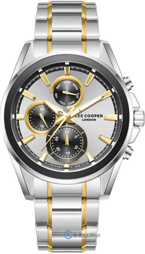 Zegarek męski LC08249.230 marki Lee Cooper to stylowe połączenie funkcjonalności oraz modnego designu. Zaprezentowana metodą analogową aktualna godzina jest czytelna i szybka do odczytania. Koperta została ozdobiona kolorem stalowym szeroka jest na 44 mm - ma okrągły kształt.