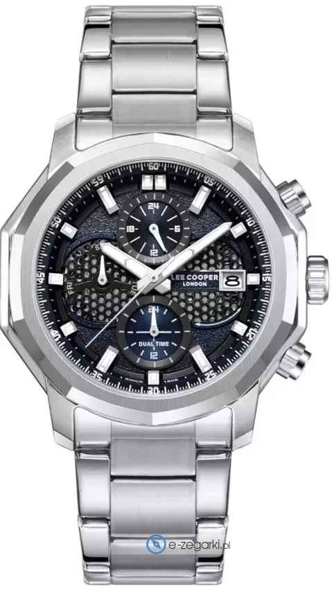 Zegarek męski LC08256.390 marki Lee Cooper to ciekawa pozycja dla ludzi ceniących sobie dbałość o detale oraz bezproblemowe zachowanie mechanizmów. Atrakcyjną konstrukcję zegarka uzyskano z pomocą tarczy w kolorze granatowym. Zegarek ten pokazuje godzinę w formacie analogowym dzięki czemu odczyt jest bezproblemowy. Koperta jest pokryta kolorem stalowym szeroka jest na 43 mm - w kształcie okrągłym.