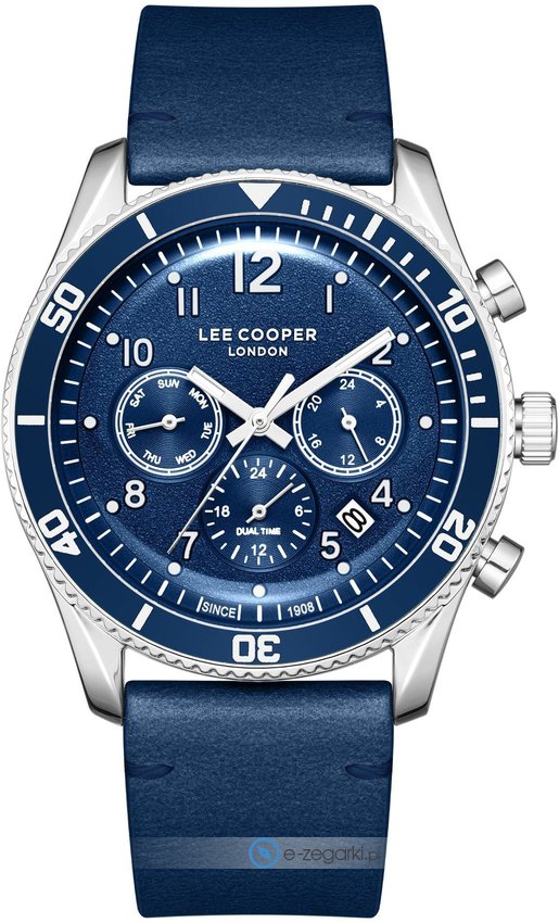 Zegarek męski LC08260.399 marki Lee Cooper to stylowe połączenie funkcjonalności i modnego wzornictwa. Charakter zapewnia wysokiej jakości tarcza w kolorze granatowym. Aktualna godzina przedstawiona jest w sposób analogowy co niezmiernie łatwo pozwala ją odczytać. Koperta szeroka jest na 42 mm - posiada okrągły kształt.