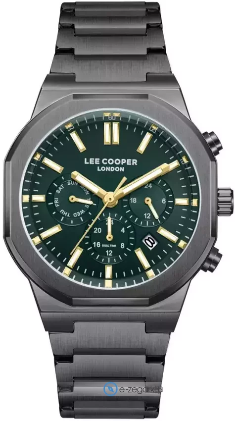 Męski zegarek Lee Cooper LC08263.070 to zegarek, który dzięki swemu wzornictwu zawsze będzie prezentował się dobrze. Charakterystyczny wygląd czasomierza osiągnięto m.in. poprzez cyferblat w kolorze zielonym. Zegarek ten prezentuje aktualny czas w formacie analogowym dzięki czemu odczyt jest bardzo łatwy. Koperta jest w kolorze grafitowym szeroka jest na 41 mm - charakteryzuje się okrągłym kształtem.