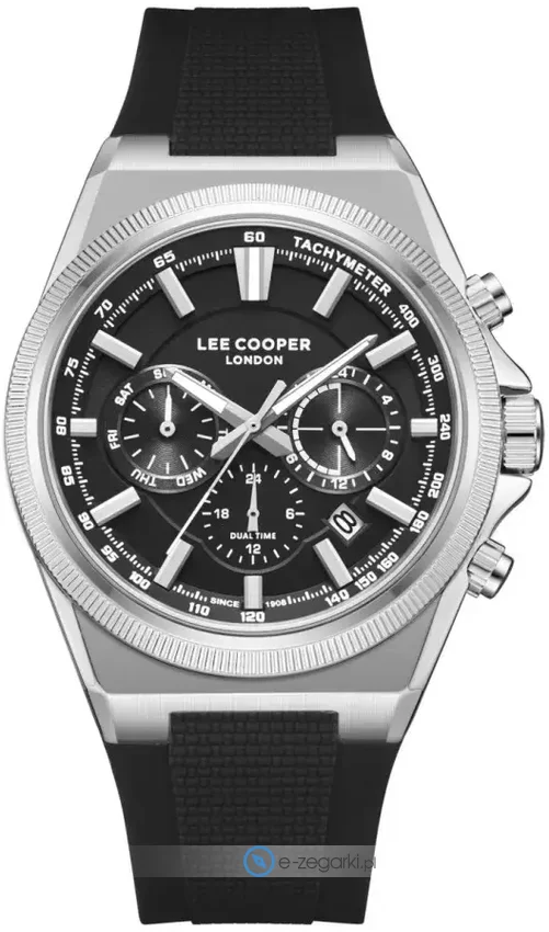 Model LC08304.351 marki Lee Cooper to elegancki zegarek naręczny męski, który wyposażono w ciekawe rozwiązania oraz funkcje. Niebanalny wygląd czasomierza osiągnięto m.in. poprzez tarczę w kolorze czarnym. Pokazana metodą analogową bieżąca godzina jest czytelna i prosta do sprawdzenia. Koperta w barwach koloru stalowego szeroka jest na 42 mm - posiada okrągły kształt.