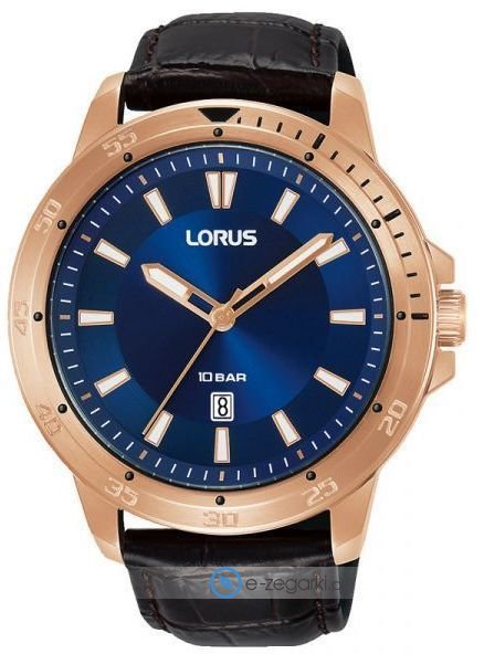 Zegarek męski RH920PX9 marki Lorus to ciekawa pozycja dla ludzi ceniących sobie dbałość o detale a także bezproblemowe działanie mechanizmów. Niebanalny wygląd zegarka uzyskano także dzięki tarczy w kolorze granatowym. Zegarek ten prezentuje aktualny czas w formacie analogowym dzięki temu odczyt jest intuicyjny. Koperta jest w kolorze różowo złotym szeroka jest na 45 mm oraz ma grubość 11 mm - ma okrągły kształt.