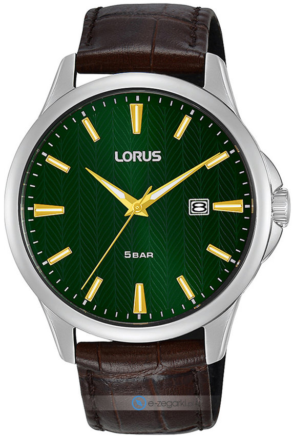 Model RH923MX9 marki Lorus to stylowy zegarek naręczny męski, który wyposażono w ciekawe rozwiązania oraz funkcje. Wysokiej trwałości tarczę zegarka pokryto zielonym kolorem. Aktualna godzina prezentowana jest w sposób analogowy co bez trudu pozwala ją odczytać. Koperta w odcieniach koloru srebrnego szeroka jest na 41 mm oraz ma grubość 10 mm - cechuje się okrągłym kształtem.