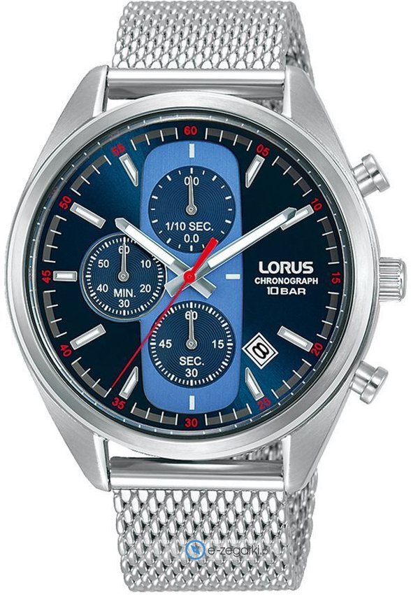 Zegarek męski RM353GX9 marki Lorus to stylowe połączenie funkcjonalności oraz modnego designu. Stylu dodaje wysokiej klasy cyferblat w kolorze niebieskim. Godzina przedstawiona jest w sposób analogowy co intuicyjnie pozwala ją odczytać. Koperta jest ozdobiona kolorem srebrnym szeroka jest na 42 mm oraz ma grubość 11 mm - w kształcie okrągłym.