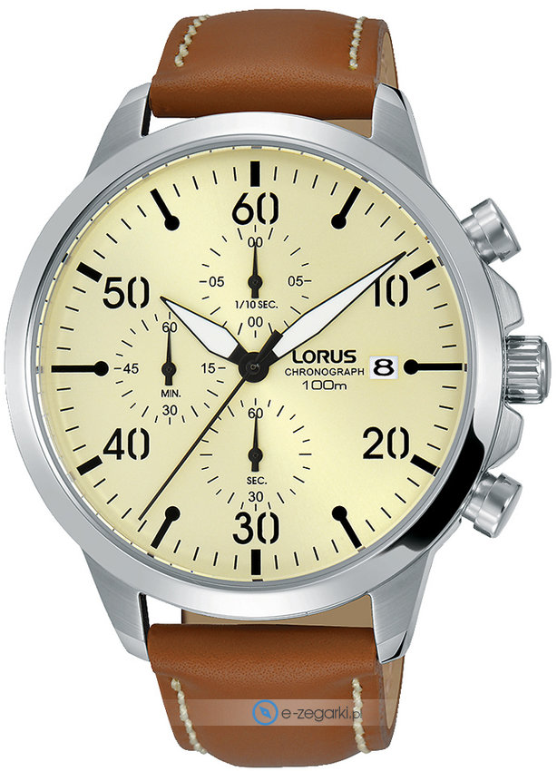 Zegarek męski RM355EX9 marki Lorus to idealna propozycja dla osób ceniących sobie dbałość o szczegóły a także bezproblemowe działanie mechanizmów. Cyferblat zegarka w kolorze beżowym. Zaprezentowana metodą analogową bieżąca godzina jest czytelna i prosta do odczytania. Koperta w odcieniach koloru srebrnego szeroka jest na 45 mm oraz ma grubość 11.50 mm - w kształcie okrągłym.