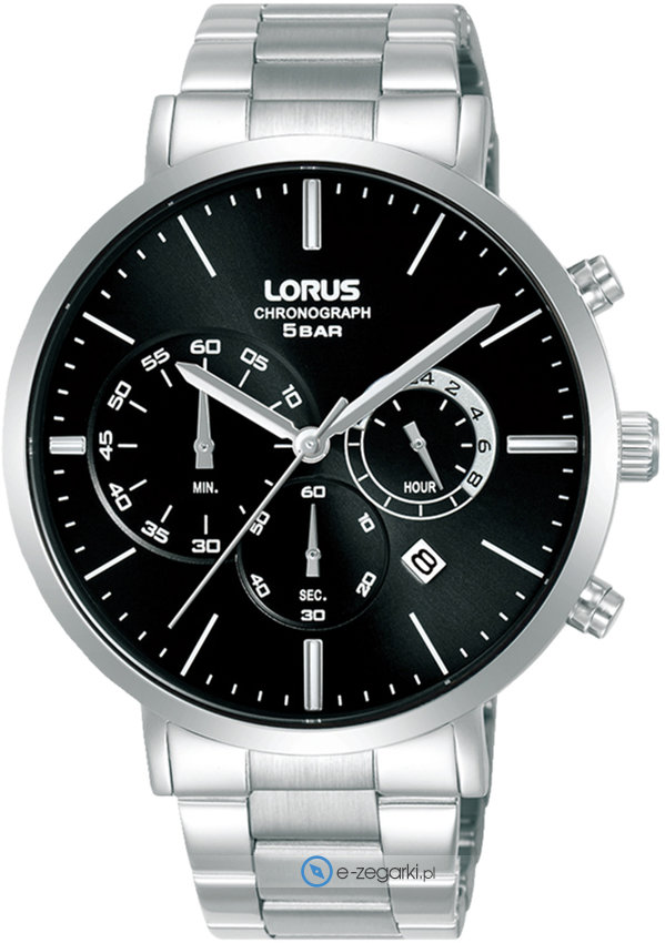 Zegarek męski RT343KX9 marki Lorus to idealna pozycja dla osób ceniących sobie dbałość o detale a także sprawne funkcjonowanie mechanizmów. Wysokiej trwałości cyferblat zegarka ozdobiono czarnym kolorem. Zegarek ten prezentuje aktualny czas w formacie analogowym dzięki temu odczyt jest bardzo łatwy. Koperta w odcieniach koloru srebrnego szeroka jest na 43 mm oraz ma grubość 10 mm - w kształcie okrągłym.