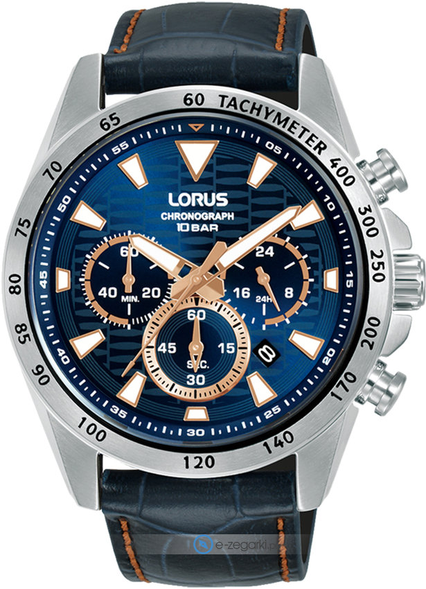 Zegarek męski RT359KX9 marki Lorus to ciekawa pozycja dla ludzi ceniących sobie dbałość o szczegóły jak również bezproblemowe funkcjonowanie mechanizmów. Stylu nadaje wysokiej klasy tarcza w kolorze niebieskim. Godzina prezentowana jest w sposób analogowy co niezmiernie łatwo pozwala ją odczytać. Koperta jest w kolorze srebrnym szeroka jest na 43 mm - ma okrągły kształt.