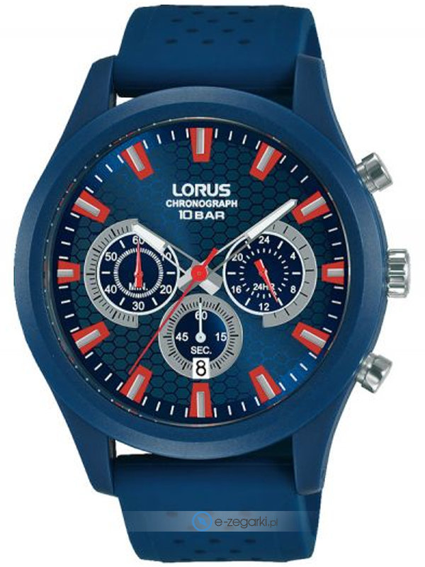 Zegarek męski RT373JX9 marki Lorus to idealne połączenie funkcjonalności a także ciekawego designu. Wysokiej jakości cyferblat zegarka pokryto niebieskim kolorem. Pokazana metodą analogową bieżąca godzina jest czytelna i łatwa do sprawdzenia. Koperta w odcieniach koloru niebieskiego szeroka jest na 44 mm - ma okrągły kształt.