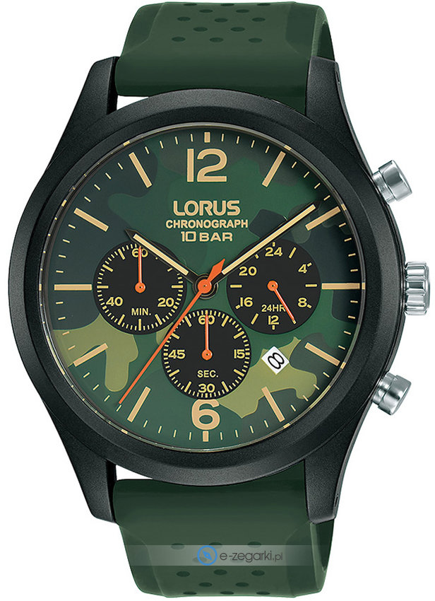 Zegarek męski RT399HX9 marki Lorus to ciekawa pozycja dla osób ceniących sobie dbałość o szczegóły a także bezproblemowe działanie mechanizmów. Cyferblat zegarka jest w kolorze zielonym. Pokazana metodą analogową bieżąca godzina jest czytelna i łatwa do sprawdzenia. Koperta jest pokryta kolorem czarnym szeroka jest na 44 mm oraz ma grubość 13 mm - w kształcie okrągłym.