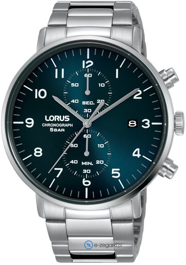 Zegarek męski RW401AX9 marki Lorus to dobra pozycja dla ludzi ceniących sobie dbałość o detale jak również bezproblemowe zachowanie mechanizmów. Charakteru nadaje wysokiej jakości cyferblat w kolorze niebieskim. Godzina pokazywana jest w sposób analogowy co niezmiernie łatwo pozwala ją odczytać. Koperta w odcieniach koloru srebrnego szeroka jest na 43 mm oraz ma grubość 12 mm - w kształcie okrągłym.