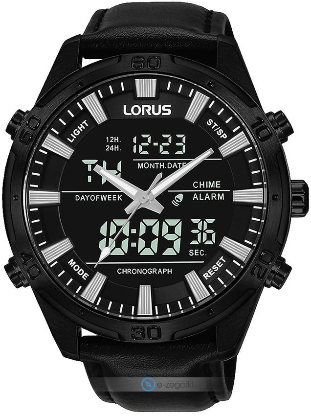 Zegarek męski RW655AX9 marki Lorus to ciekawa propozycja dla ludzi ceniących sobie dbałość o detale a także bezproblemowe działanie mechanizmów. Wysokiej trwałości tarczę zegarka pokryto czarnym kolorem. Godzina prezentowana jest w sposób analogowo - cyfrowy co bez trudu pozwala ją odczytać. Koperta jest w kolorze czarnym szeroka jest na 46 mm oraz ma grubość 16 mm - wyróżnia się okrągłym kształtem.
