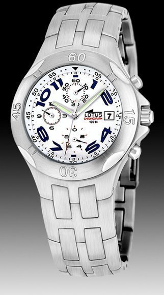 Lotus to zegarki produkowane w Hiszpani już ponad 30 lat. W tym czasie brand zakorzenił się na dobre na rynku sprzedaży zegarków w Europie. Zegarki tej marki skierowane są głównie dla młodych osób, potrzebujących nietuzinkowego designu przy jednoczesnym zachowaniu najwyższej jakości. Przy produkcji chronografów Lotus wykorzystywane są jedynie wysokogatunkowe materiały, tak by mieć pewność ich wieloletniej przydatności. Użyte w nich mechanizmy pochodzą z cenionej japońskiej fabryki. Śmiało więc można napisać, że zegarki te łączą w sobie hiszpański temperament i japońską precyzję. Zegarki Lotus oczywiście wyróżniają się świeżym podejściem do kolorów, indywidualnym wyglądem. Można pośród nich znaleźć czasomierze poświęcone sportom lotniczym i wodnym. Kupując w naszym serwisie zegarek Lotus masz gwarancję, iż zegarek jest całkowicie nowy, pochodzi z oficjalnej dystrybucji i producent udziela na niego dwu letniej gwarancji.