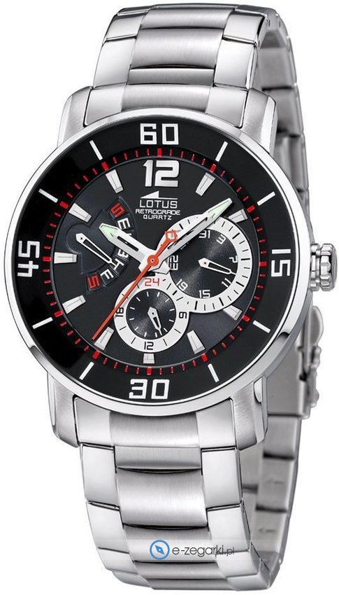 Model L15429-4 marki Lotus to stylowy zegarek naręczny męski, który posiada ciekawe rozwiązania i funkcje. Charakteru nadaje wysokiej jakości tarcza w kolorze czarnym. Zaprezentowana metodą analogową bieżąca godzina jest czytelna i szybka do sprawdzenia.