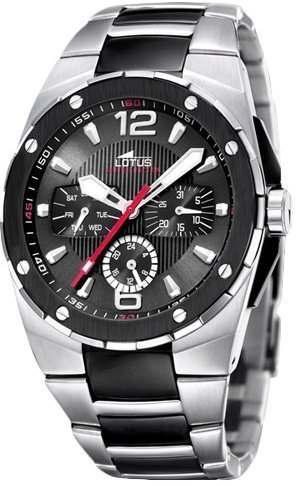 Model L15432-3 marki Lotus to elegancki zegarek naręczny męski, który wyposażono w ciekawe rozwiązania i funkcje. Cyferblat zegarka w kolorze czarnym. Aktualna godzina prezentowana jest w sposób analogowy co bez trudu pozwala ją odczytać.