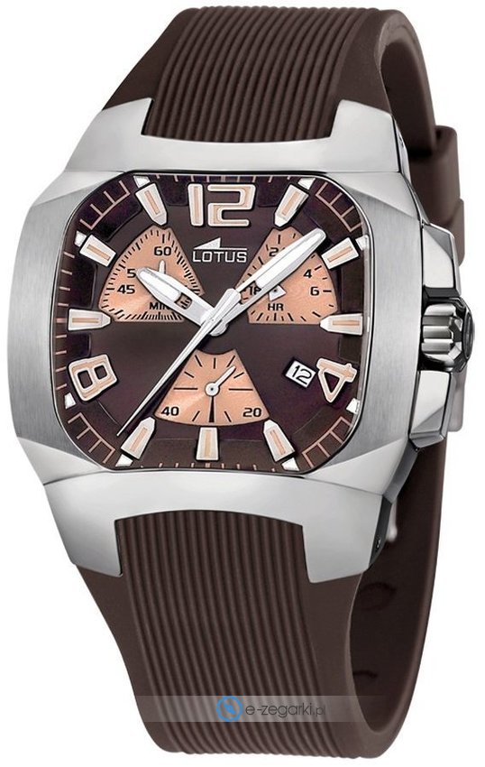 Zegarek męski L15515-2 marki Lotus to stylowe połączenie funkcjonalności oraz modnego designu. Wysokiej trwałości cyferblat zegarka ozdobiono brązowym kolorem. Aktualna godzina pokazywana jest w sposób analogowy co bez trudu pozwala ją odczytać.