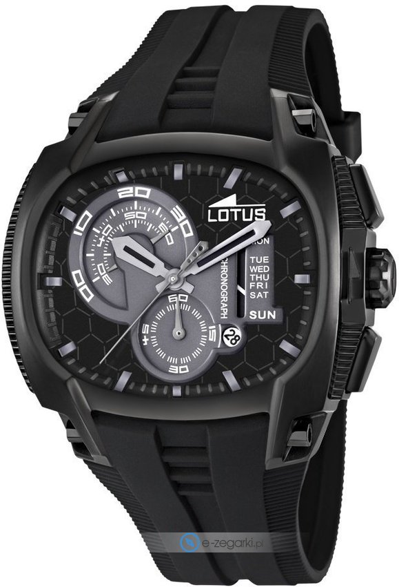 Lotus to zegarki produkowane w Hiszpani już ponad 30 lat. W tym czasie marka zakorzeniła się na dobre na rynku sprzedaży czasomierzy w całej Europie. Zegarki tej marki kierowane są przeważnie dla młodych osób, szukających niepowtrzalnego designu przy jednoczesnym zachowaniu najwyższej jakości. Przy produkcji chronografów Lotus wykorzystywane są tylko wysokogatunkowe podzespoły, tak by mieć pewność ich długiej przydatności. Stosowane w nich mechanizmy są produkcji japońskiej. Śmiało więc można rzec, że te zegarki łączą w sobie hiszpański temperament i japońską precyzję. Zegarki Lotus z pewnością wyróżniają się nowoczesnym podejściem do kolorów, indywidualnym wyglądem. Można pośród nich odszukać czasomierze poświęcone sportom lotniczym i wodnym. Nabywając w naszym serwisie zegarek Lotus masz gwarancję, iż zegarek jest całkowicie nowy, pochodzi z autoryzowanej sprzedaży i producent udziela mu dwu letniej gwarancji.