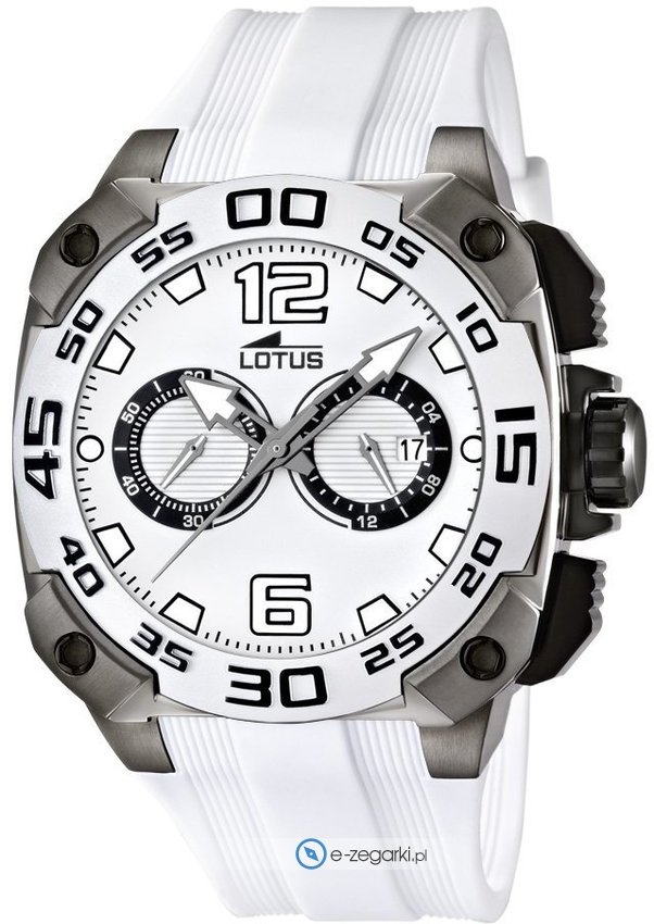 Model L15791-1 marki Lotus to gustowny zegarek naręczny męski, który wyposażono w ciekawe rozwiązania oraz funkcje. Cyferblat zegarka w kolorze białym. Godzina zaprezentowana jest w sposób analogowy co bez trudu pozwala ją odczytać.