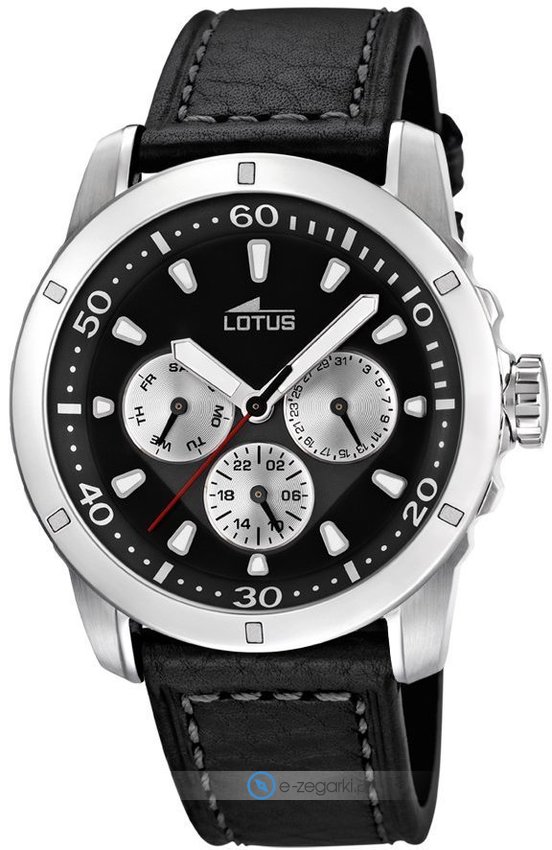 Model L15811-3 marki Lotus to elegancki zegarek naręczny męski, który jest wyposażony w pomysłowe rozwiązania i funkcje. Styl zapewnia wysokiej klasy cyferblat w kolorze czarnym. Pokazana metodą analogową aktualna godzina jest czytelna i łatwa do odczytania. Koperta szeroka jest na 45 mm - charakteryzuje się okrągłym kształtem.