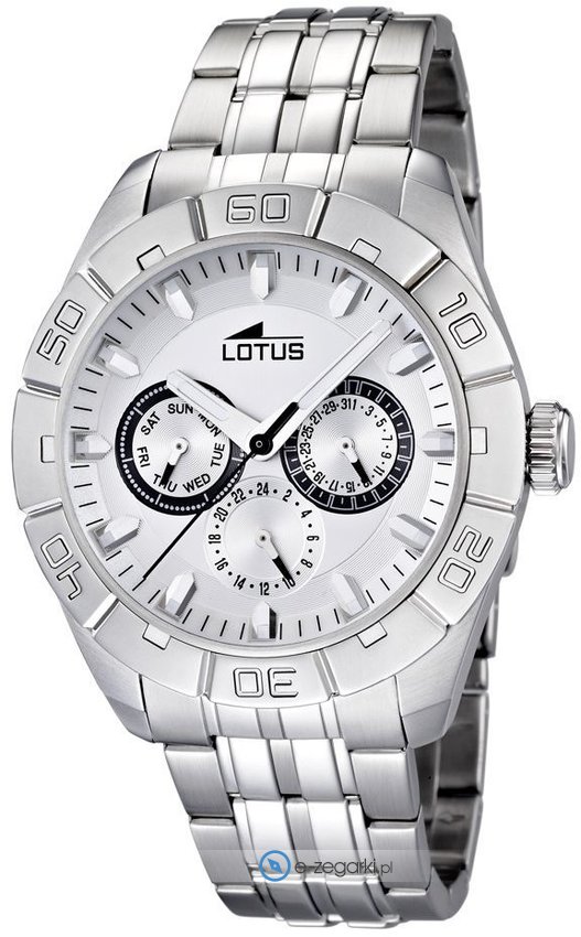 Już od trzydziestu lat prowadzona jest sprzedaż hiszpańskich zegarków Lotus. W tym czasie brand zakorzenił się na stałe na rynku sprzedaży czasomierzy w całej Europie. Zegarki tej marki skierowane są głównie dla młodych osób, szukających niebagatelnego designu przy zachowaniu kluczowej jakości. Przy produkcji chronografów Lotus wykorzystywane są tylko wysokogatunkowe podzespoły, tak aby mieć pewność ich długotrwej przydatności. Użyte w nich mechanizmy są produkcji japońskiej. Śmiało więc można stwierdzić, że te zegarki to połączenie japońskiej precyzji oraz hiszpańskiego temperamentu. Zegarki Lotus oczywiście wyróżniają się nowoczesnym podejściem do kolorów, niebagatelnym wyglądem. Można wśród nich odszukać zegarki poświęcone sportom lotniczym lub wodnym. Kupując w naszym sklepie internetowym zegarek Lotus masz pewność, że zegarek jest całkowicie nowy, pochodzi z oficjalnej dystrybucji i producent udziela mu 2 letniej gwarancji.